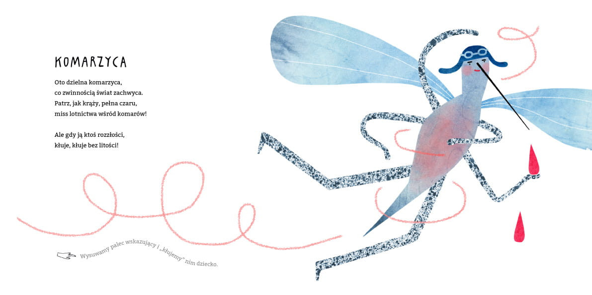 Krótkie wierszyki zamieniają palce rodzica w zwierzątka, które a to wygryzą dziurę w skarpecie, a to chowają się pod pachą albo skaczą po dziecięcych pleckach. Idealne do czytania na dobry początek dnia, popołudniowe przytulanie przed drzemką lub radosne zakończenie wieczoru. Czy jest lepszy sposób na bliskość niż wspólnie spędzony czas? Specjaliści zajmujący się rozwojem dzieci są zgodni, że minimum 20 minut zaangażowanej, nierozproszonej uwagi rodzica dziennie buduje i cementuje bliską więź z dzieckiem. Może to być zabawa, przytulanki, czytanie… albo trzy w jednym, czyli Wierszyki paluszkowe! Jestem przekonana, że raz poznani Szczurek Jurek, Robaki, czy tańczące Surykatki staną się cudownymi kompanami waszych 20 minut dziennie.